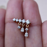 Round & Pear Dangling Drilled Diamond Tassel Hoops