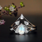 Made to fit around your oval engagement ring, these ring guards are studded with marquise cut natural Diamonds and pear & round natural Londong Blue Topaz. They add the right amount of royal and drama to your classic engagement ring. A perfect anniversary gift! Can be custom-made to fit.