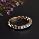Princess Cut Diamond with Broad Vine Band in Solid Gold