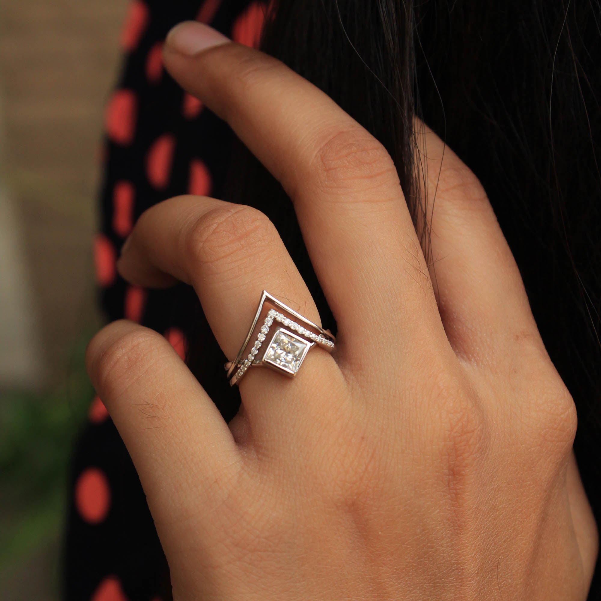 Reserved for Cameron - 3Pc 5mm Princess Moissanite Interlocking Engagement Ring Set, 18k Gold