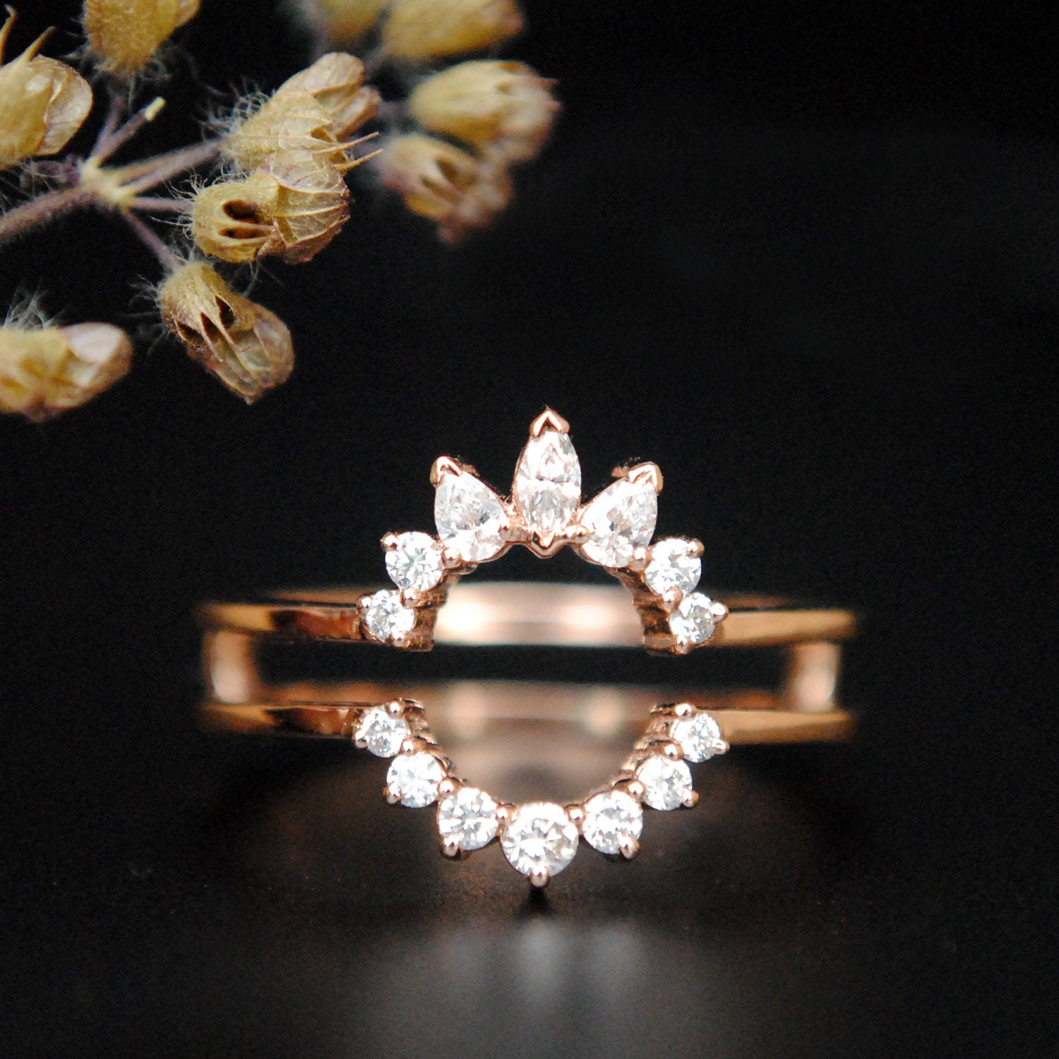 Asymmetric Diamond Halo Ring Guard for Round Diamond Ring