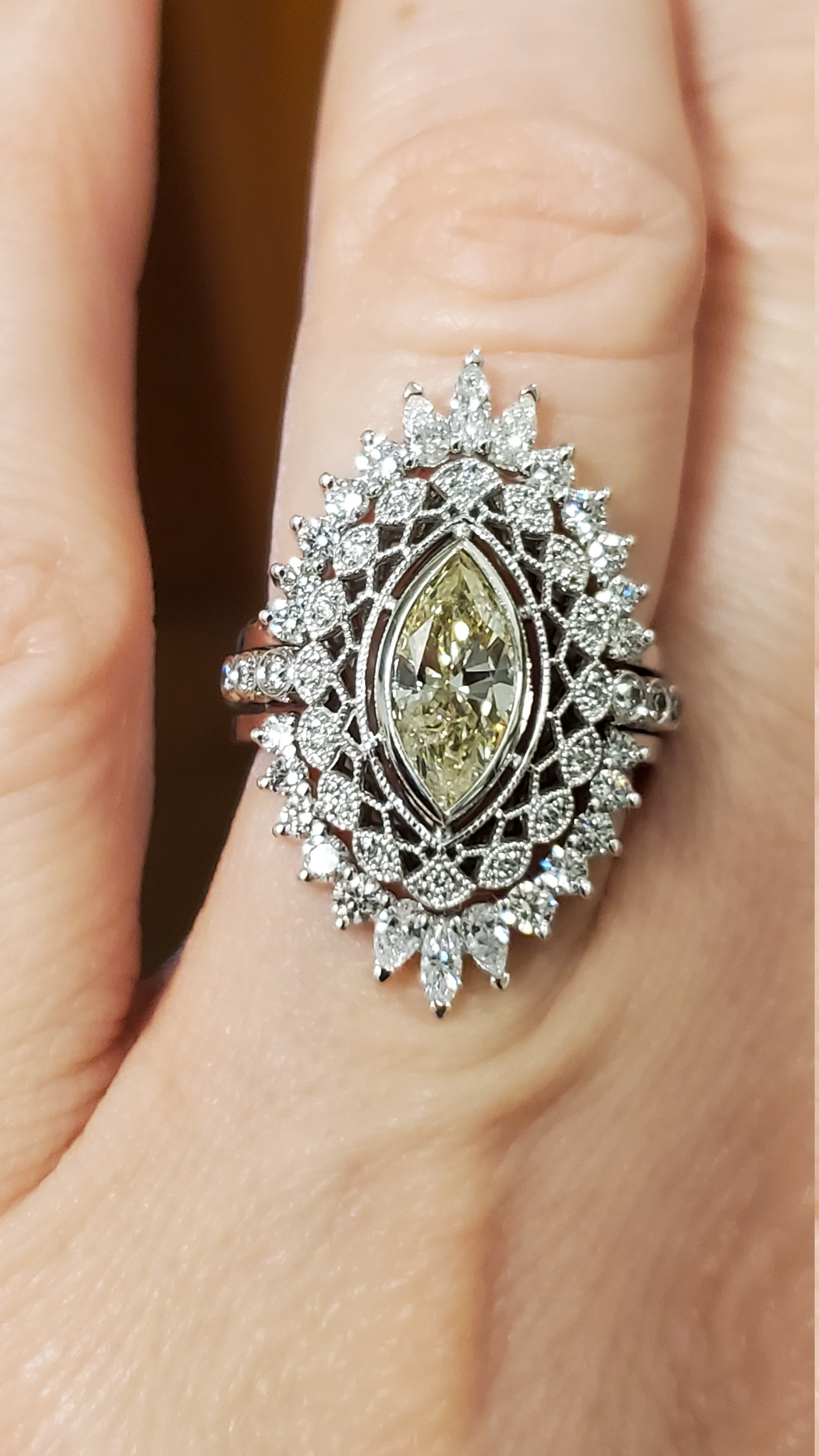 Reserved for Nicole - Pinched Center 2mm Tapered Stacking Wedding Band, 14k Solid Gold, L-M Diamonds