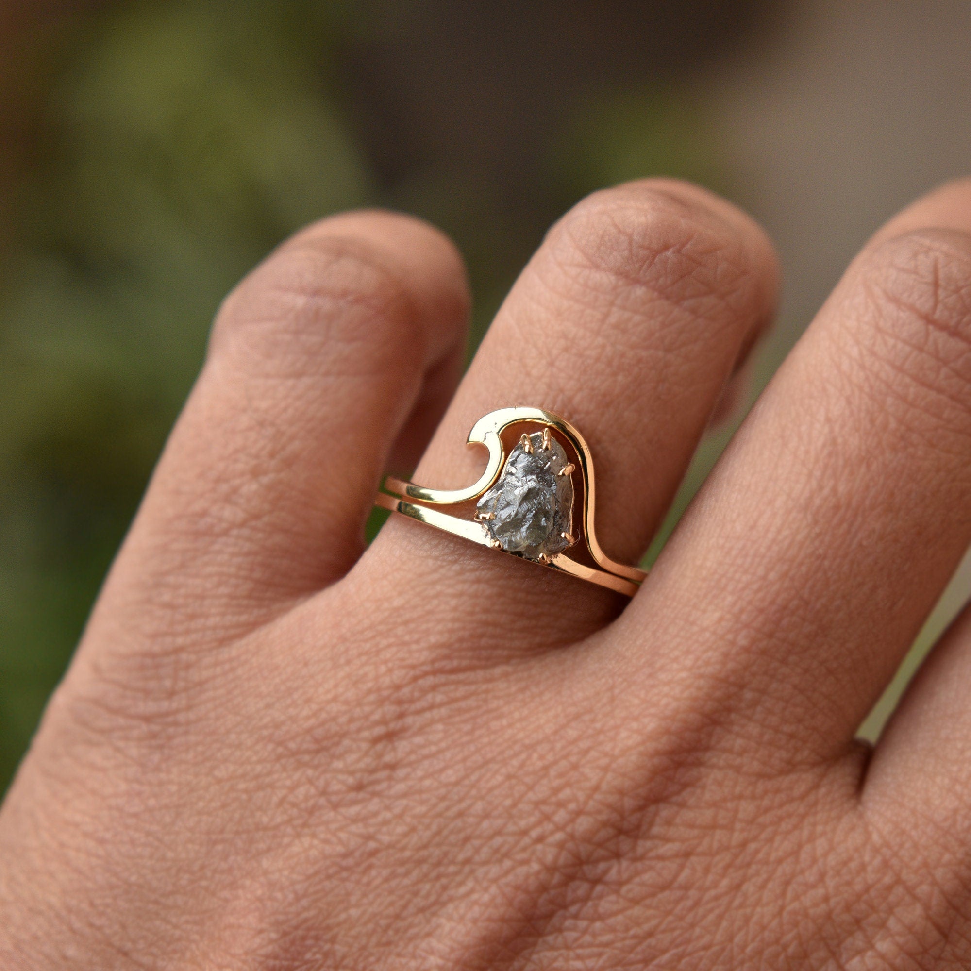 Reserved for Cameron - 3Pc 5mm Princess Moissanite Interlocking Engagement Ring Set, 18k Gold