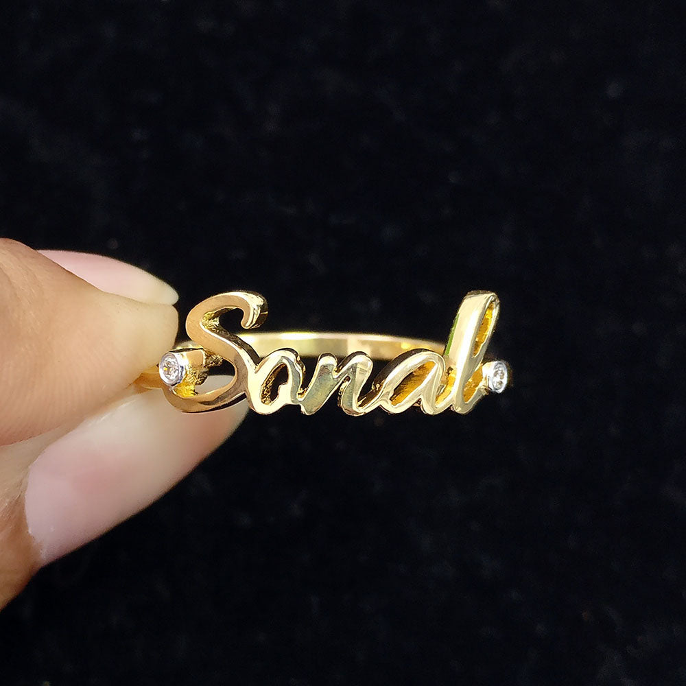 $875.00Beautiful handcrafted 14k or 18k Solid Gold name ring. This lovely custom made ring is a perfect accessory to own or gift - for your wife, best friends, brothers, sisters...