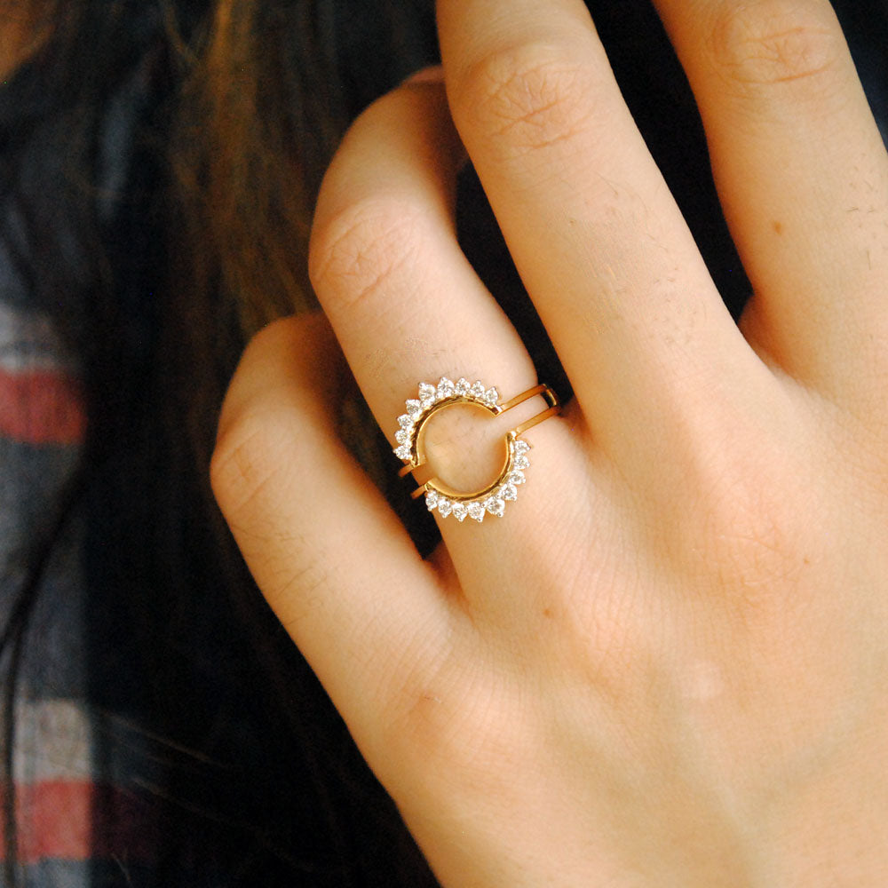 $1,906.00Sparkly ring guards, studded with round diamonds, handcrafted in 14k gold, this ring adds the right amount of royal and drama to your simple engagement ring. A perfect anniversary gift!•...