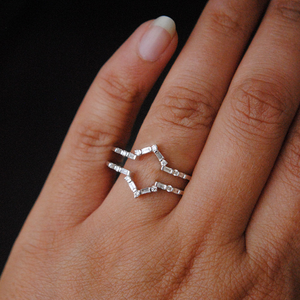 Stackable V Ring with Pave Setting