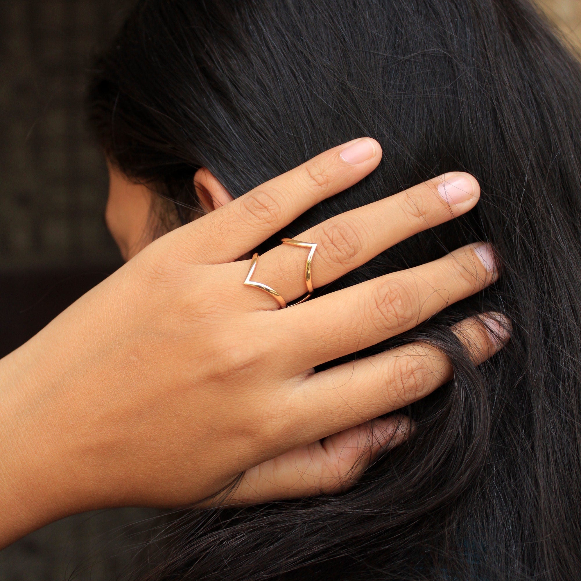 14K Solid Gold V Ring Enhancers, Plain Gold Engagement Ring Wrap Guard, Promise Anniversary Gifts
