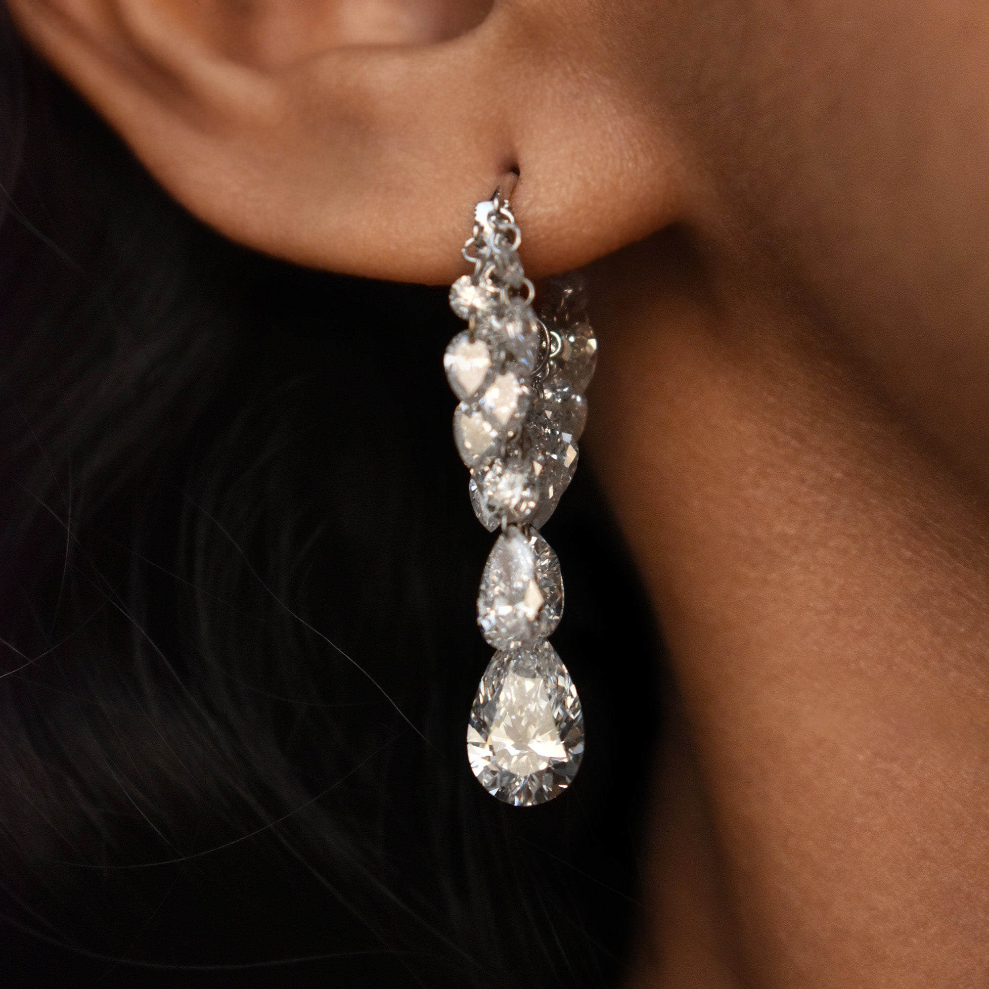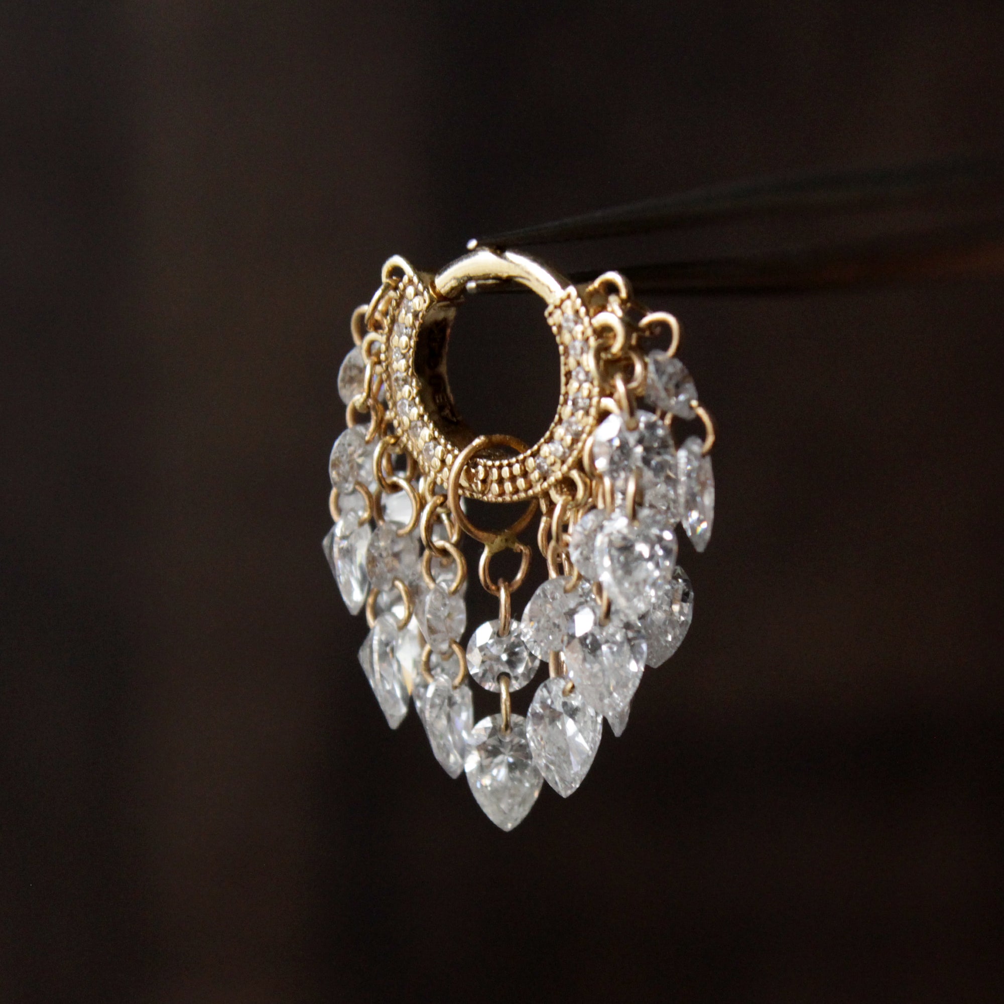 Grand Tassel Hoop with Round & Pear Drilled Diamonds