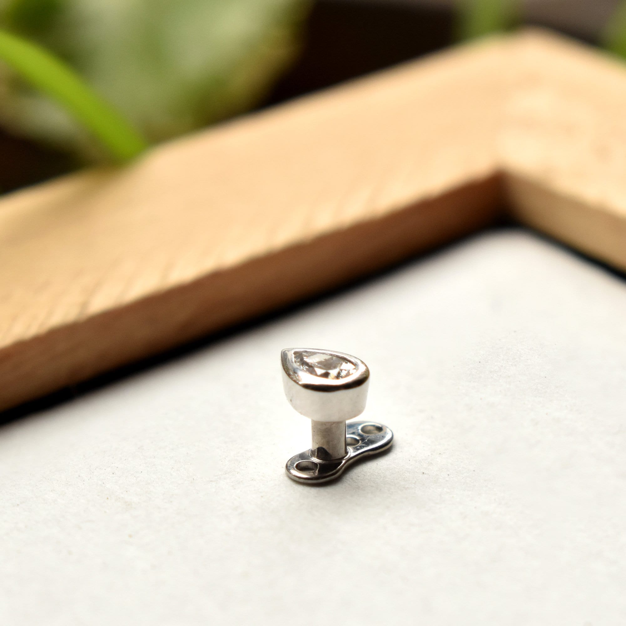 Pear Diamond Dermal Top in 14K 18K Solid Gold with Titanium Anchor